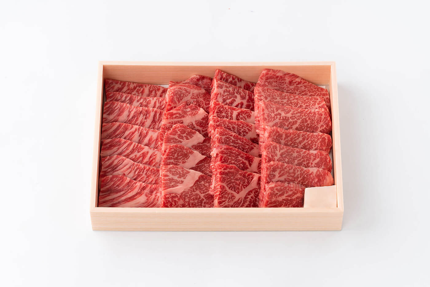 ロース・モモやトモサンカク等の霜降り肉を手切りし、詰め合わせます。ほとばしる肉汁が上品で深い味わいを感じさせてくれます。