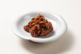 モモやスネなどの赤身肉を、毛利志満伝統の調理法で時間をかけ、じっくりと煮込んで作り上げてあります。山椒のほのかな香味と相まって食欲をそそります。ご飯のおとも、チャーハンやおにぎりの具にぜひどうぞ。