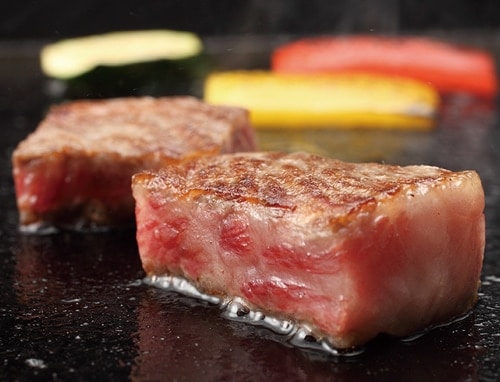 フライパンの中で何回も裏返すのは禁物。表面に熱がまわりすぎ、硬くパサついてきます。お皿に盛りつけるとき、上になる方を先に焼き肉の端から持ち上げて裏返します。お肉の真ん中をフォークや箸で押さえると美味しい肉汁がこぼれてしまいます。※秘伝:ご家庭でステーキを焼く際は、フライパンよりもすき焼きの鉄鍋で!